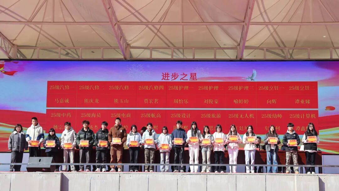 本次表彰涵盖了湖北工匠杯技能大赛奖项、进步之星、劳动之星、技能之星、校园文体之星、文明礼仪之星、学习标兵、优秀学生干部、三好学生等八大奖项。