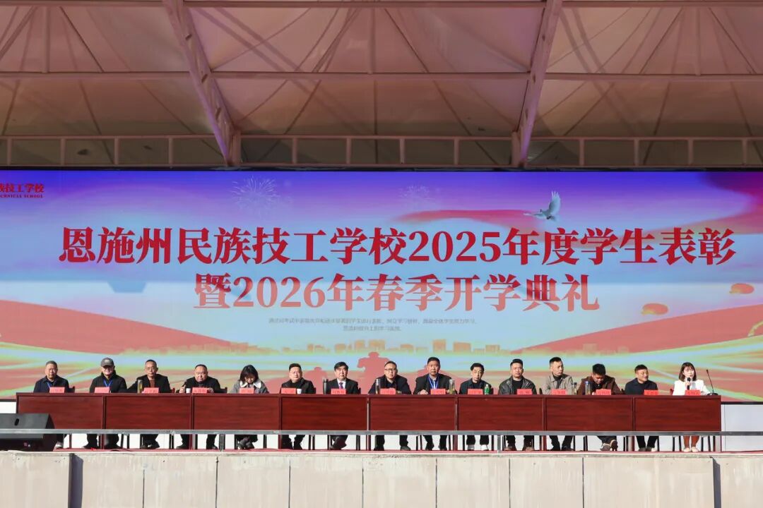 2026年3月10日,恩施州民族技工学校全体师生齐聚运动场,隆重举行2025年度学生表彰暨2026年春季开学典礼。这不仅是一次对过往成绩的总结与嘉奖,更是一场面向新学期、新目标的动员誓师大会。